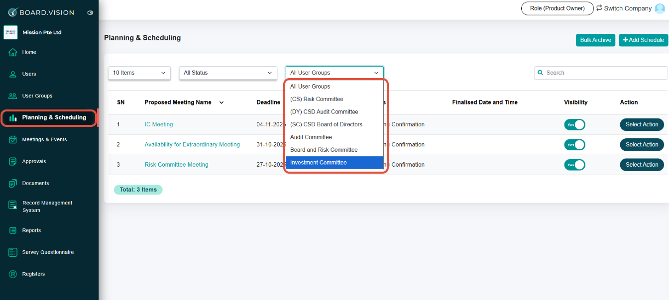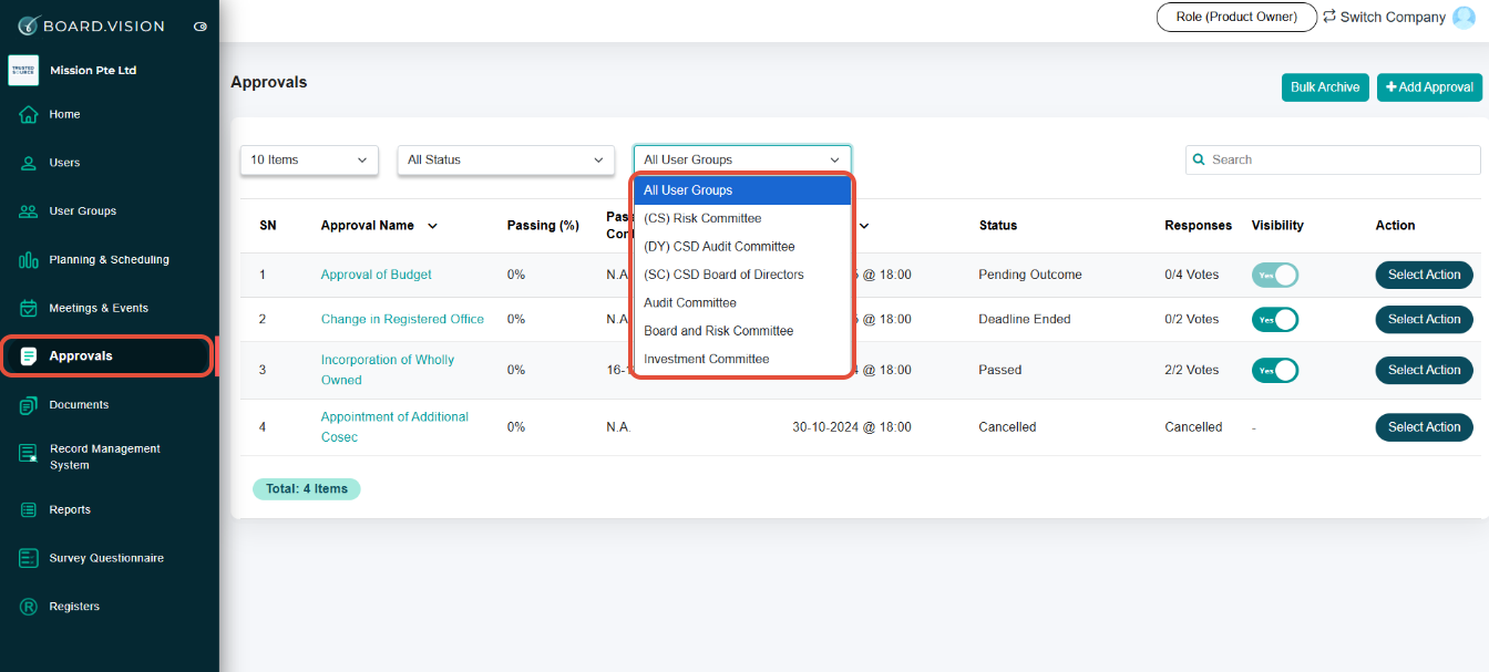 Welcome to Board.Vision Tutorials. In this tutorial, we will walk you through the steps to filter out in schedules/meetings/approvals by a user group.