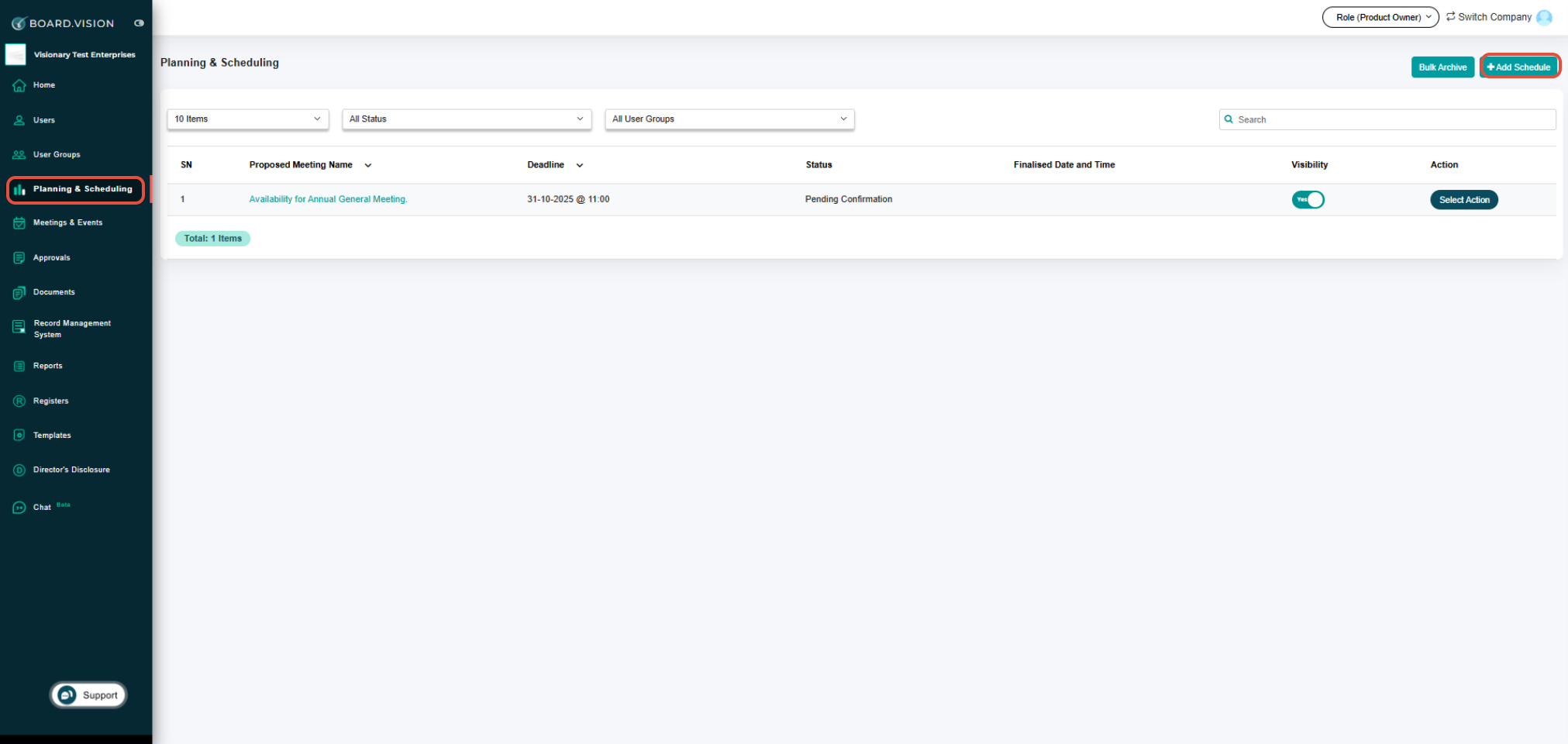 2) From the left navigation menu, go to Planning & Scheduling, and click on +Add Schedule.