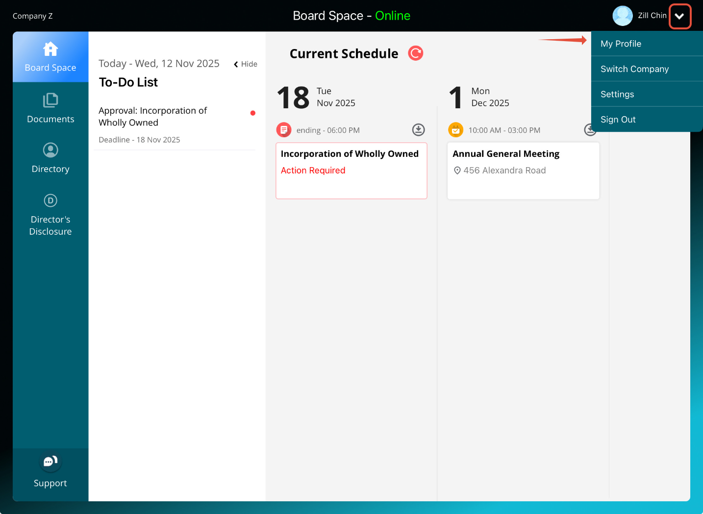 2) Tap on the arrow-down icon next to your profile name and select My Profile from the dropdown menu.