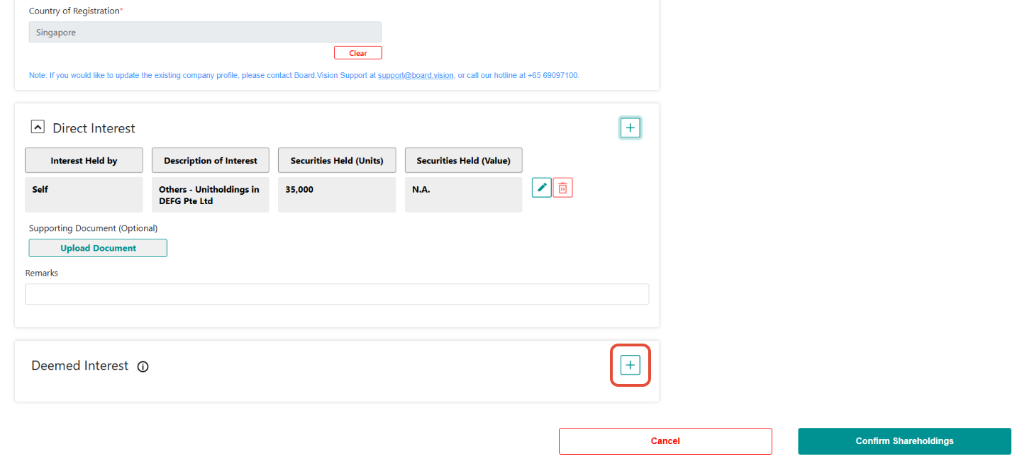 14) If you need to add any Deemed Interest, click the + icon under the "Deemed Interest" section.