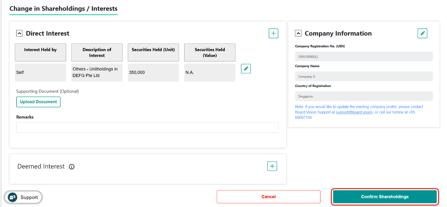 5) Under Direct or Deemed Interest, click on the Pen icon