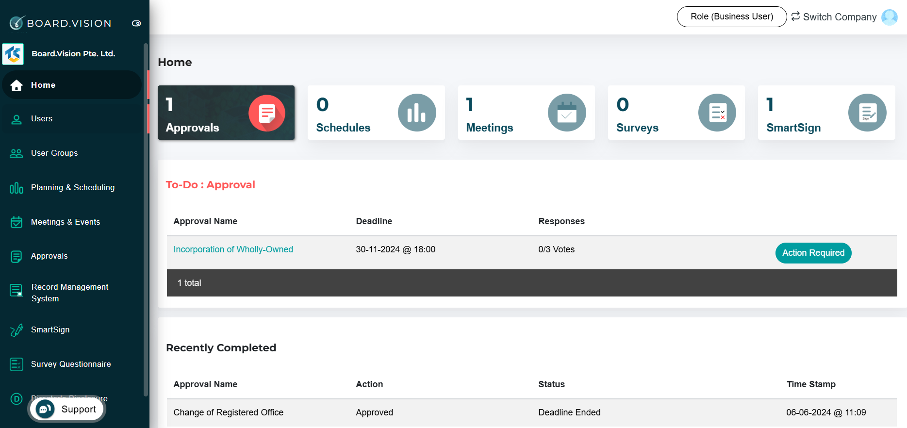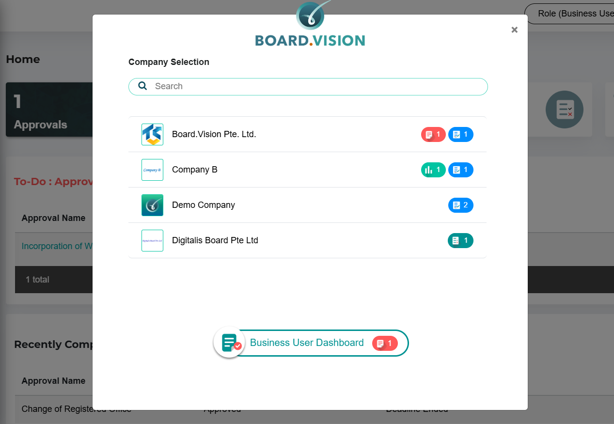 The Business User Dashboard is a newly introduced feature on desktop/laptop since April 15, 2024. The badge displayed represents only the number of pending Approvals that require your action.