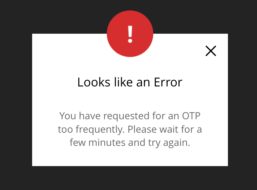 "You have requested for an OTP too frequently. Please wait for a few minutes and try again."