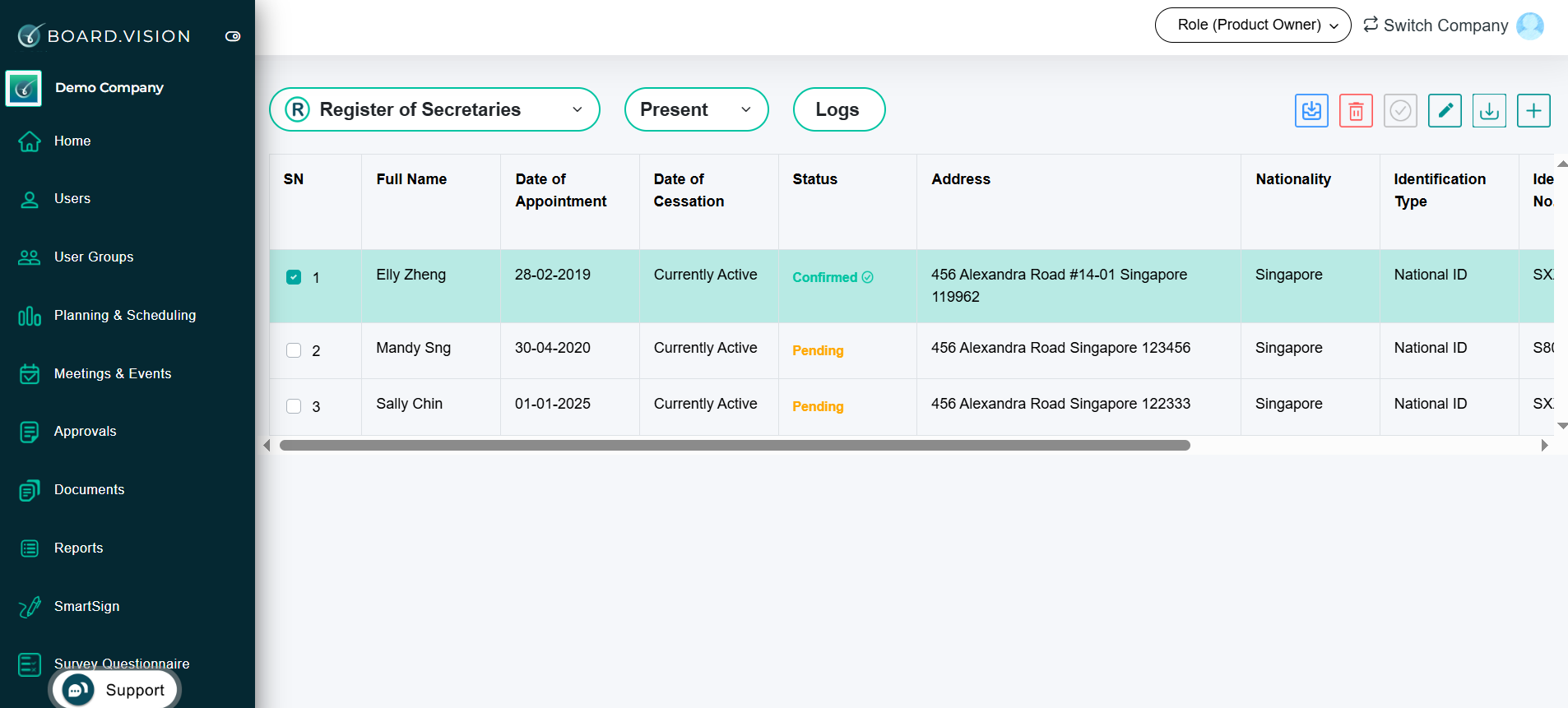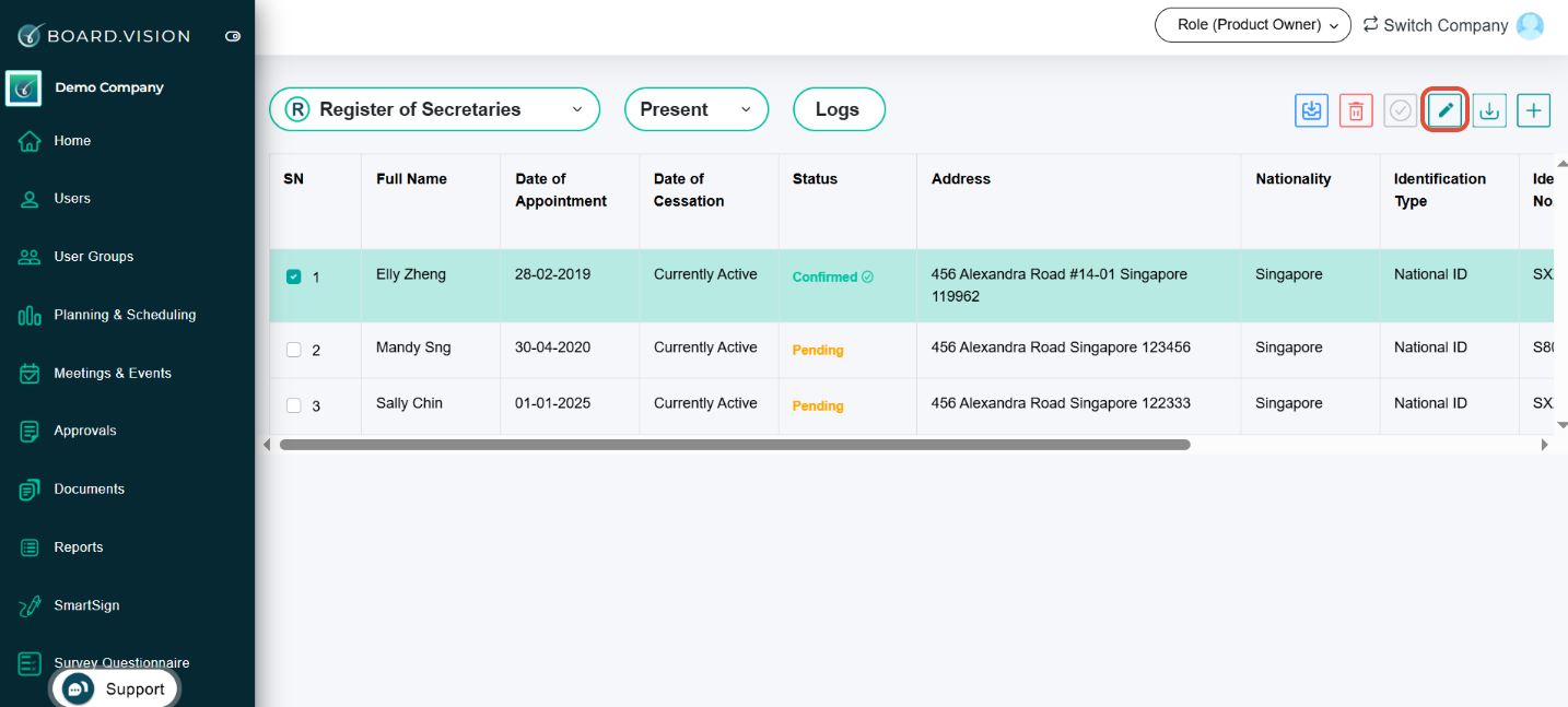 Important Note: The Date of Appointment cannot be edited for a CoSec once it has been confirmed.