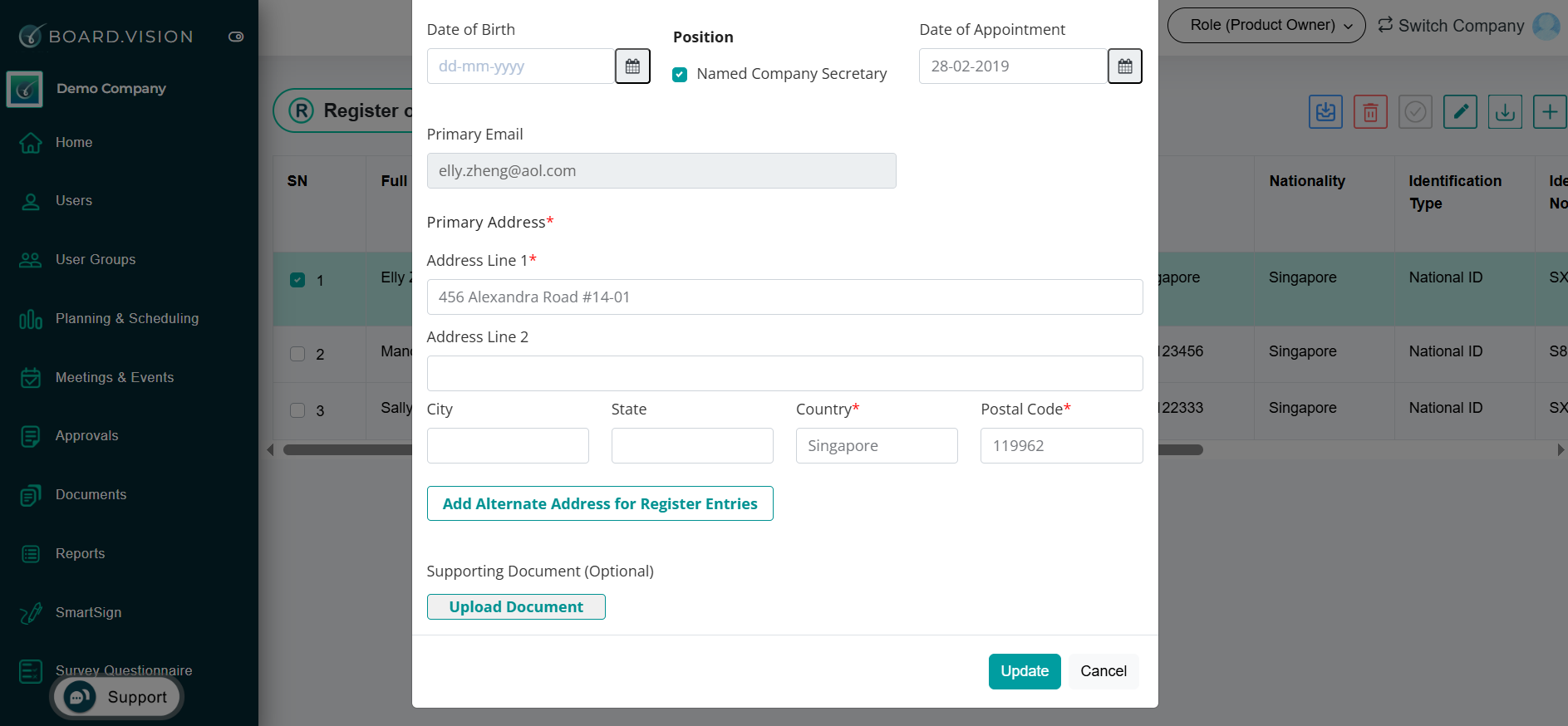 4) On the "Register of Directors" pop-up window, edit the information as required, then click on Update.