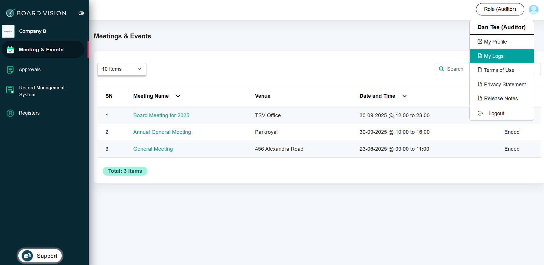 4) You will be directed to the Logs screen, where you can view your activity logs.