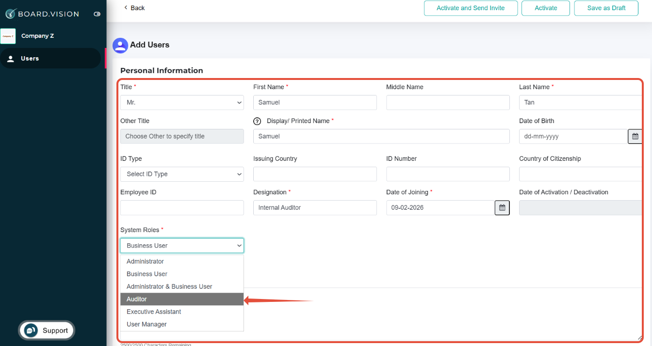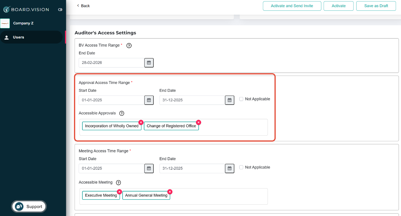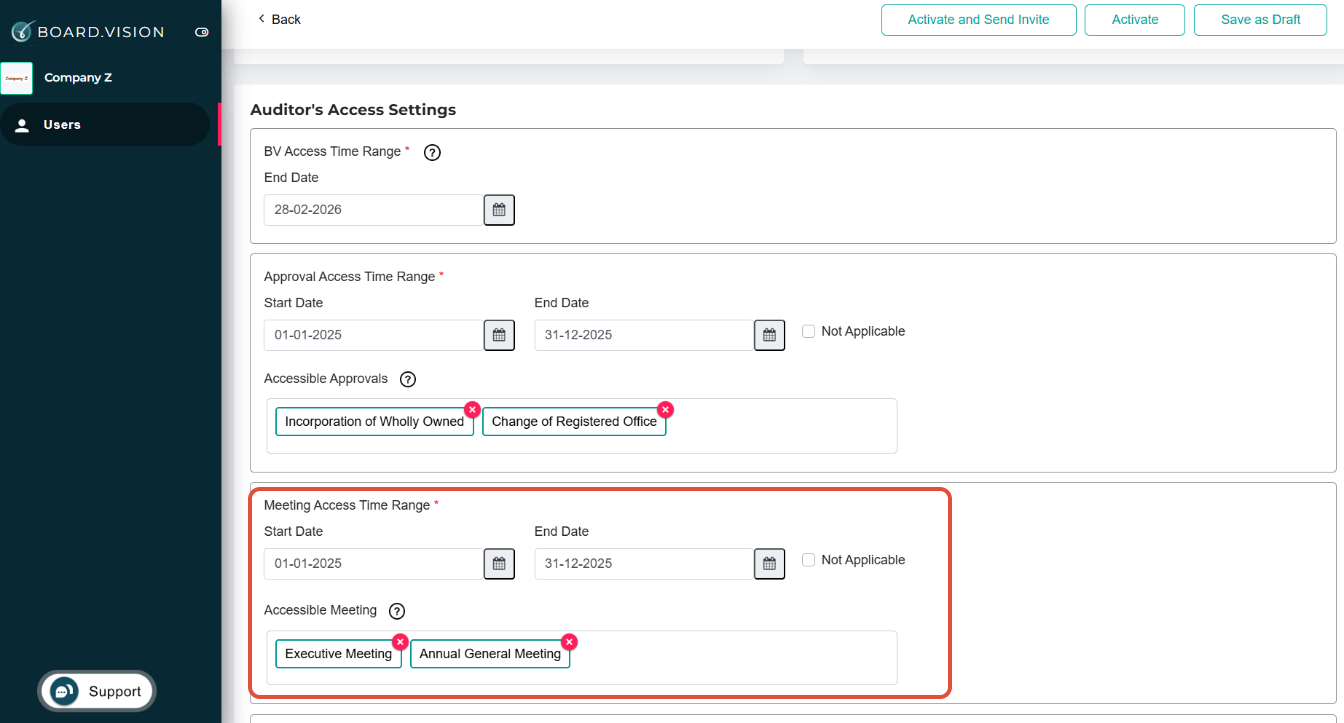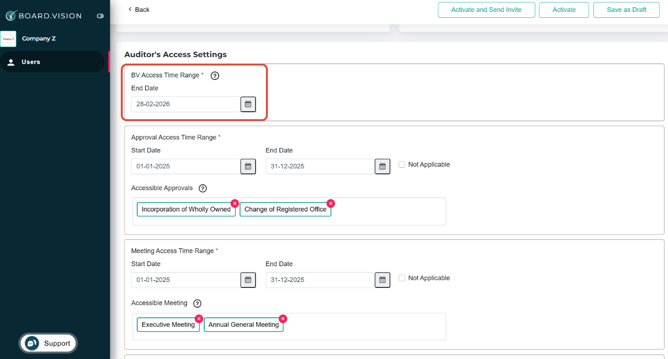 Next, Administrators must set the Auditor’s access period in Board.Vision.