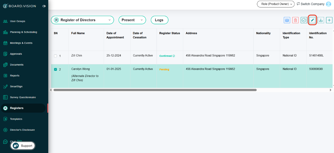 Important Note: Important Note: The Date of Appointment cannot be edited for an Alternate Director once it has been confirmed.