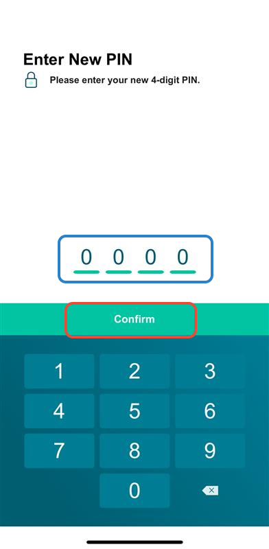 7) Next, set your New 4-digit PIN then tap on Confirm.