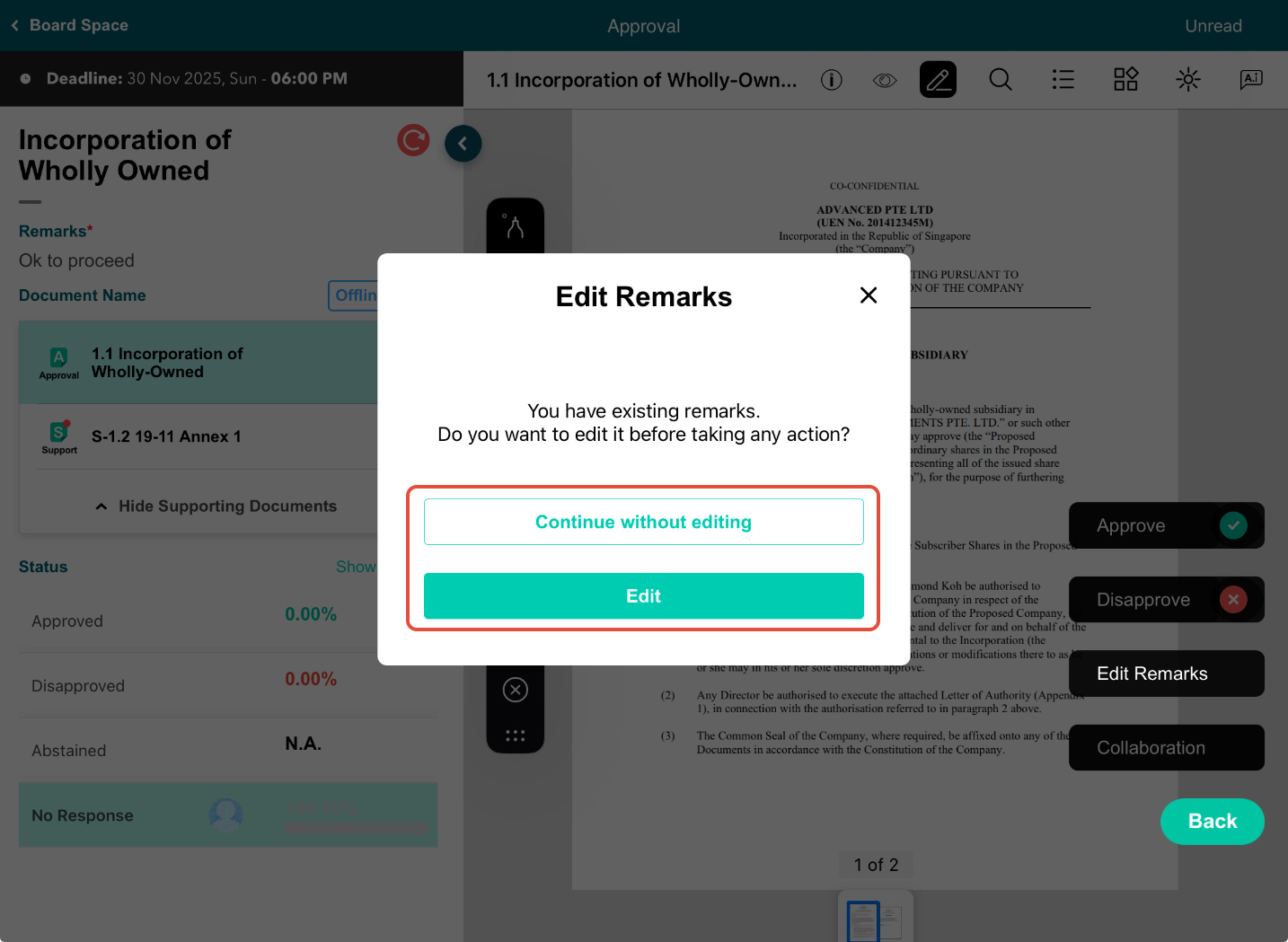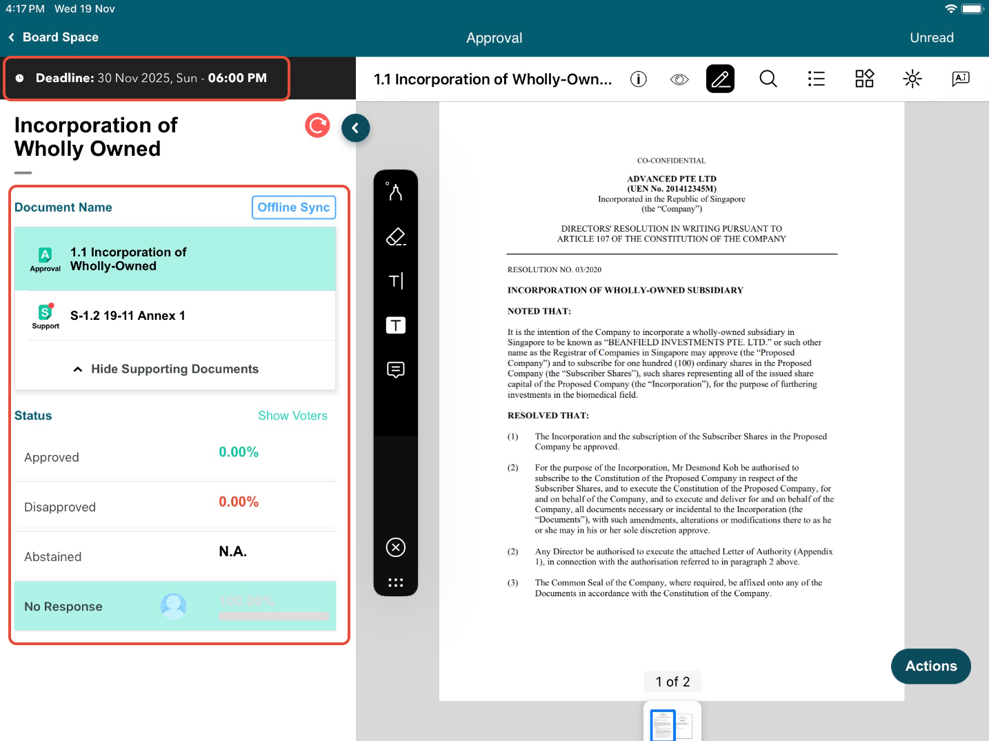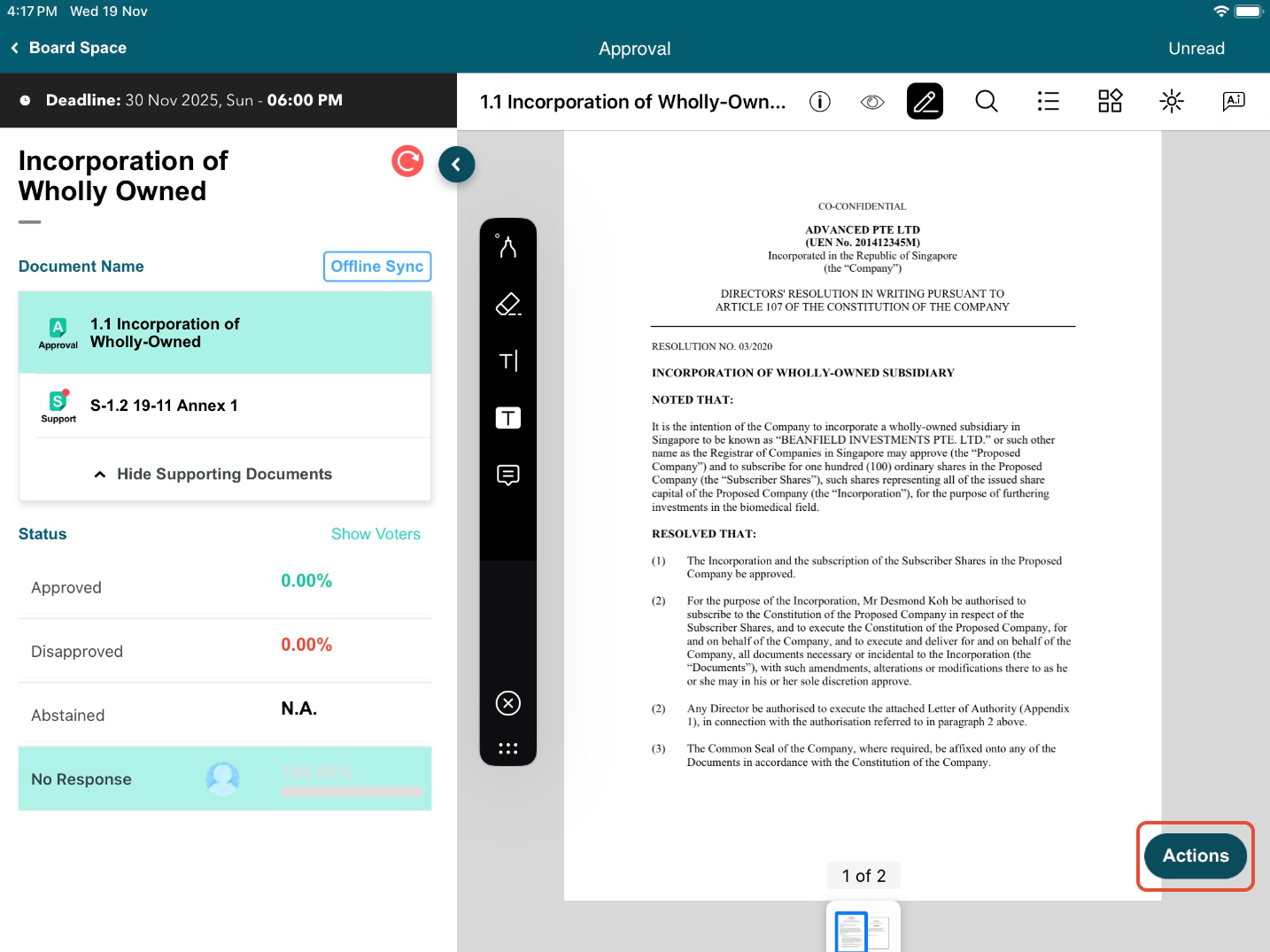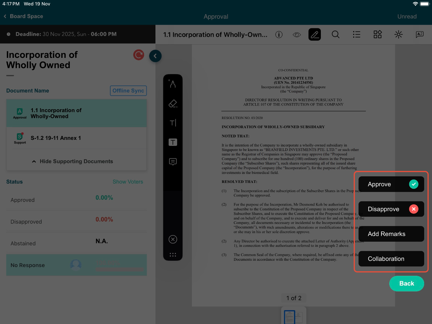 6) To act on the Approval, tap on Approve, Disapprove, or Abstain (if Administrator enabled).