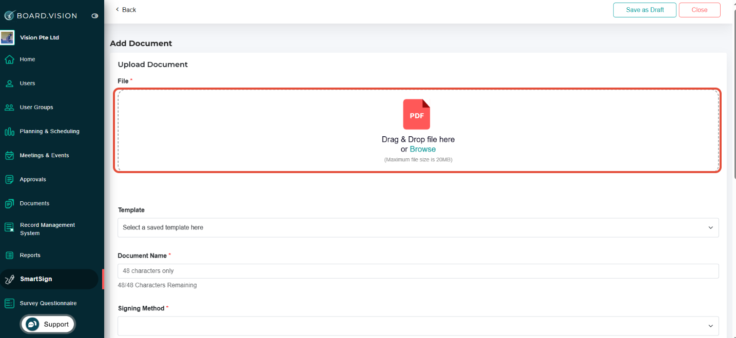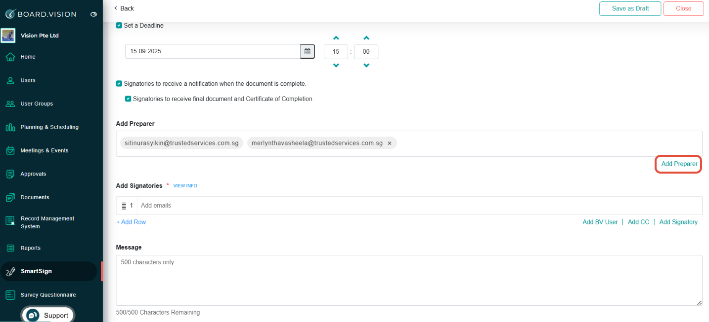 ii) Click on Add Signatory - To add a non-Board.Vision User.