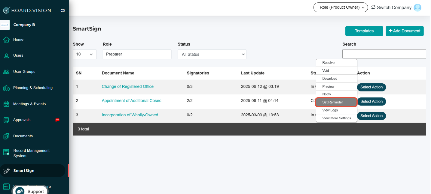 Welcome to Board.Vision Tutorials. In this tutorial, we will walk you through the steps to set an auto reminder to notify pending signatories.