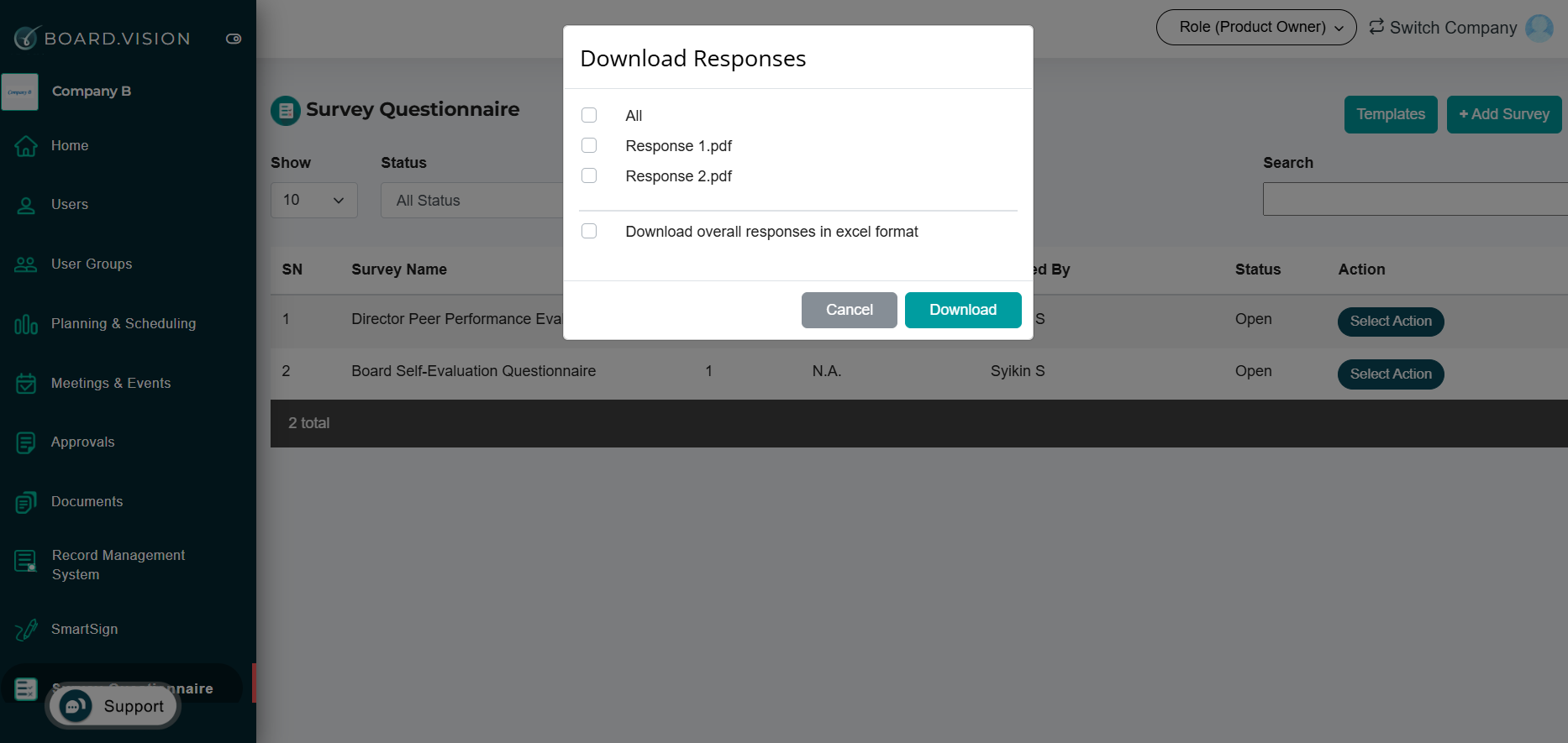 We have enhanced the survey module to allow users to download survey results in multiple formats, including all questions and collated responses.
