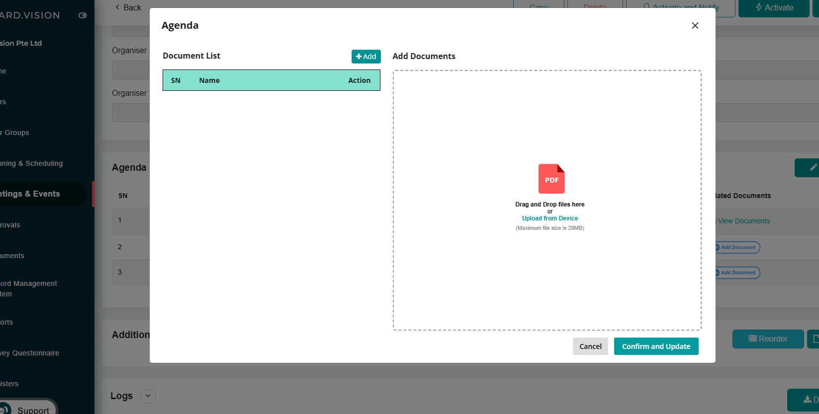 Previously, if an agenda item had multiple documents, Administrators had to add each one individually. This involved repeatedly clicking Add Document, selecting a file, and clicking Confirm to proceed with the next upload.