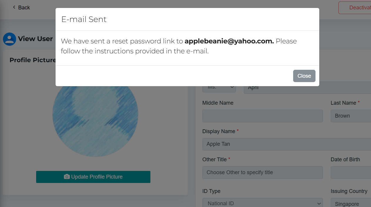 Note: Users can also reset their own password via the login screen. Go to this userguide on how users can reset password.