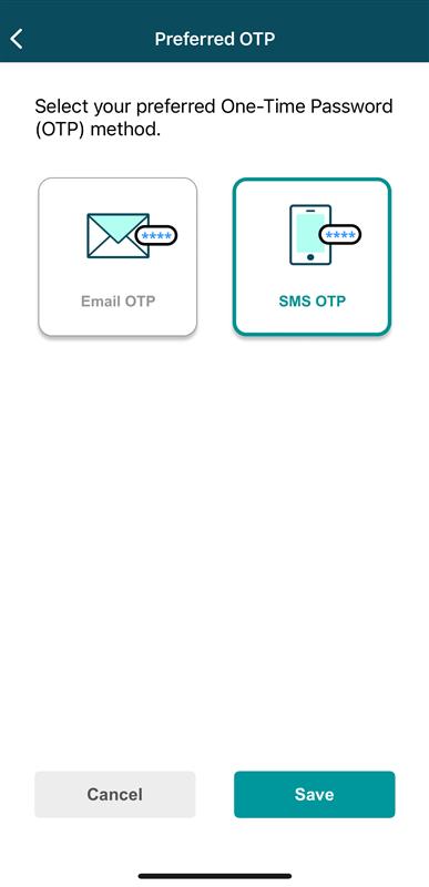 6) Then, you will be directed to select Email OTP or SMS OTP and tap on Save.