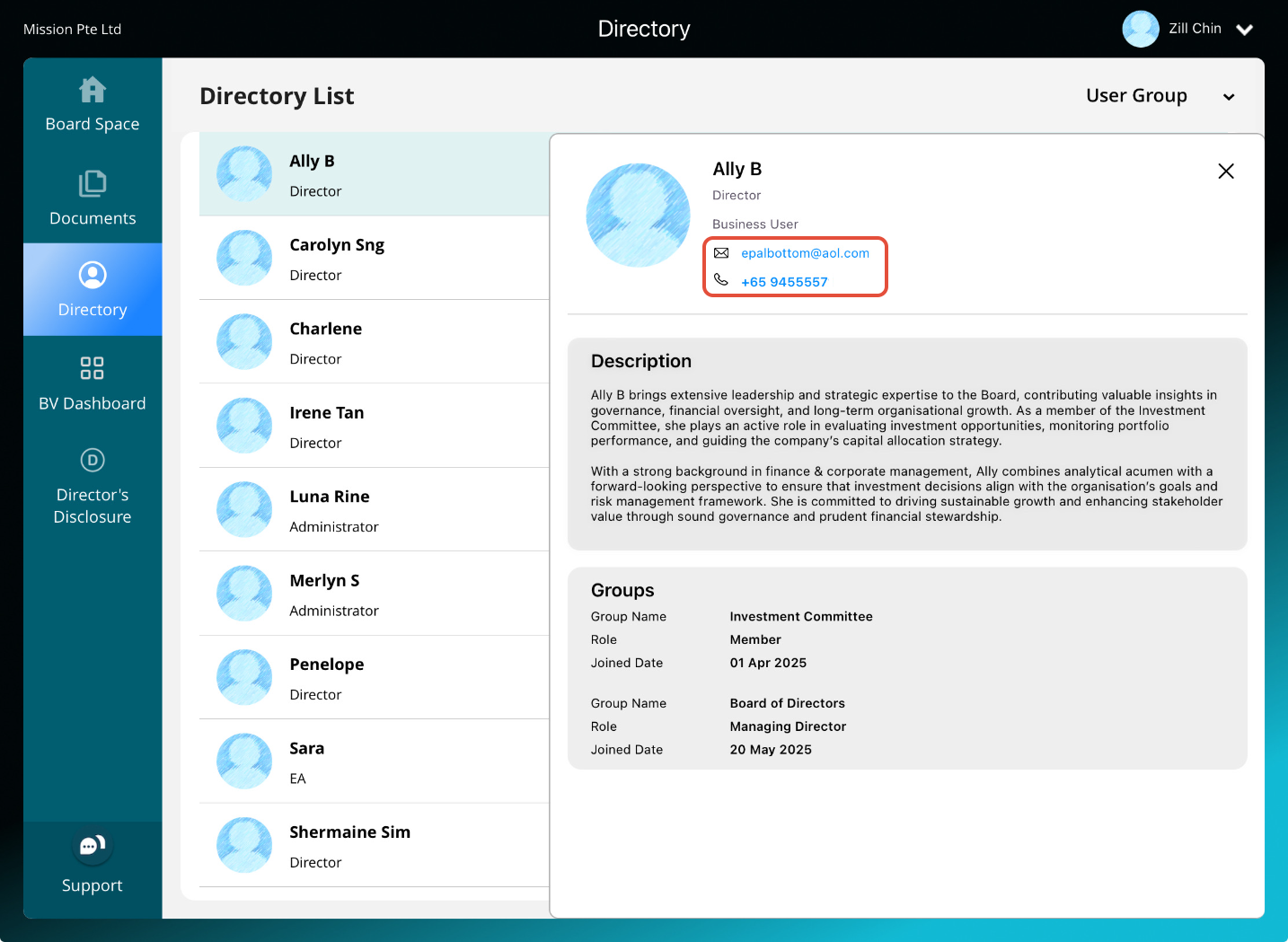 We have enhanced the User Profile pop-up screen in the Directory List.