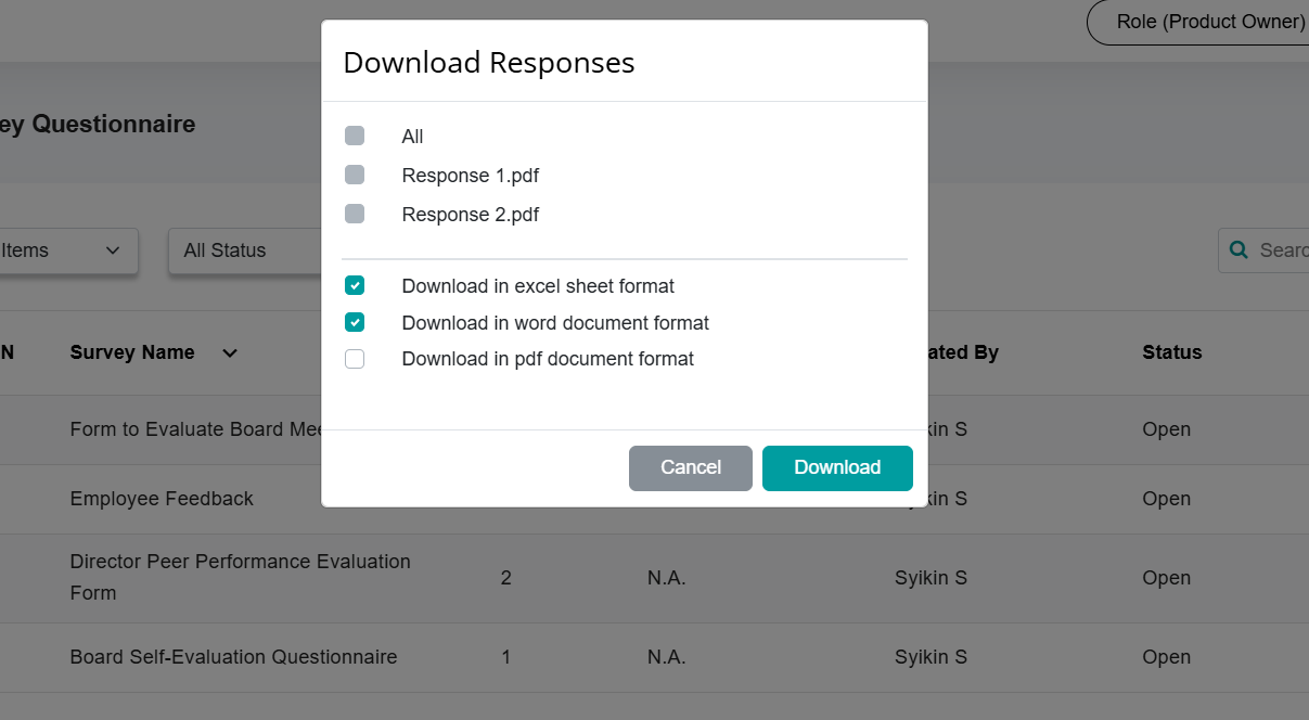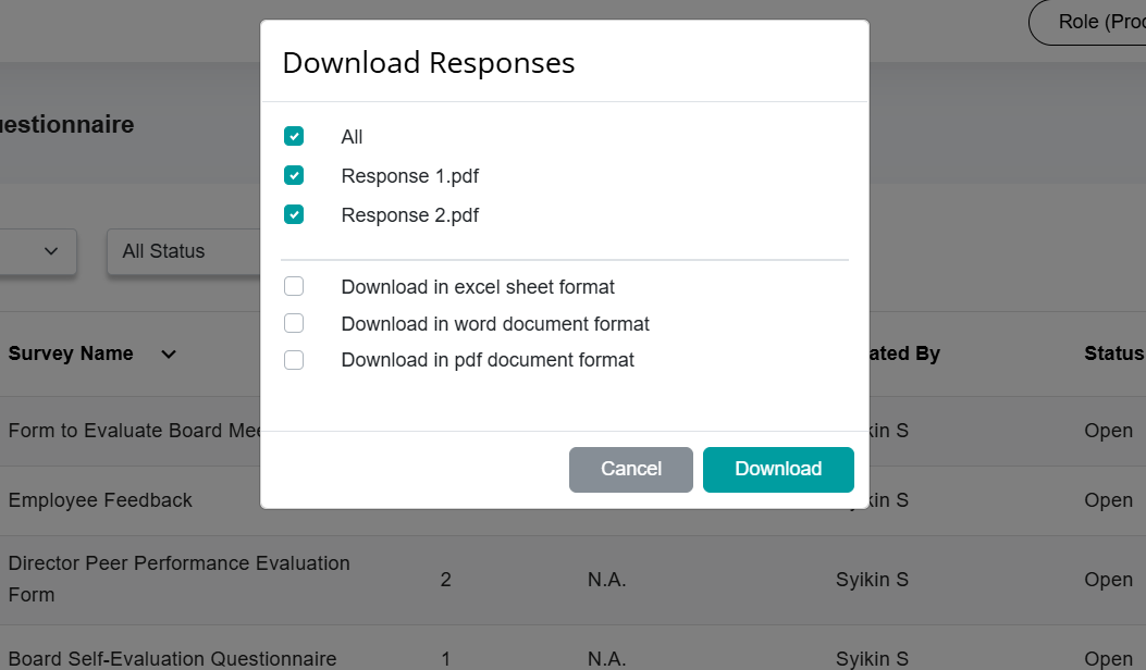 3) Then, select if you would like to download some or all the responses in PDF format.