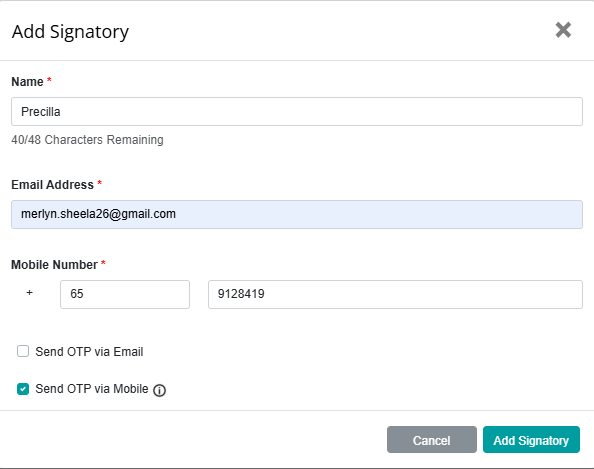 We have enhanced the SmartSign module to validate the signatory’s mobile number when “Send OTP via Mobile” is enabled.