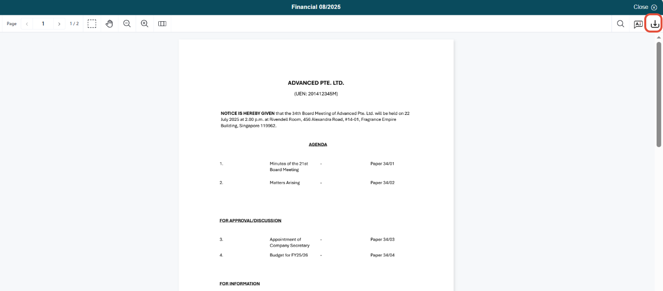 Below is a sample illustration of the download icon displayed to Auditors.