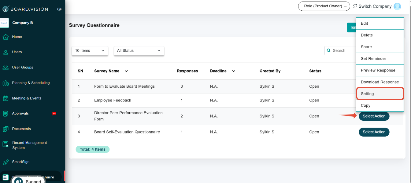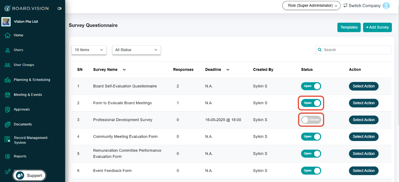 We have enhanced the Survey Questionnaire module, allowing Surveyors to update the survey status directly from the survey listing page.