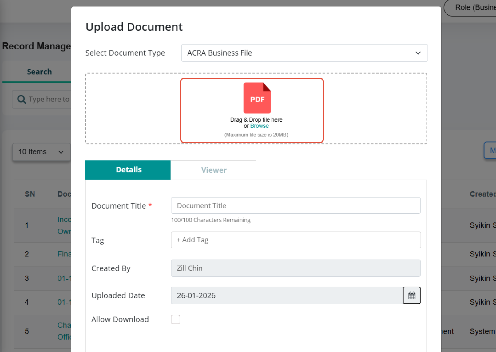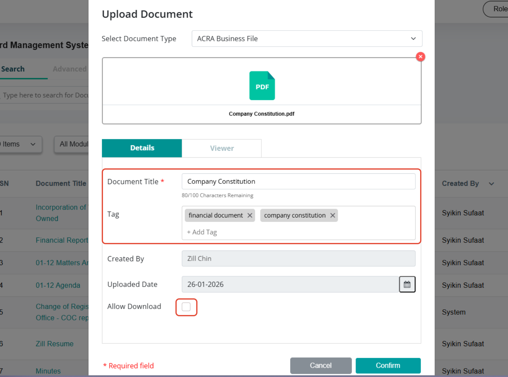 c) Once the document has been attached, enter the Title and Tag, and select the “Allow Download” option if required.