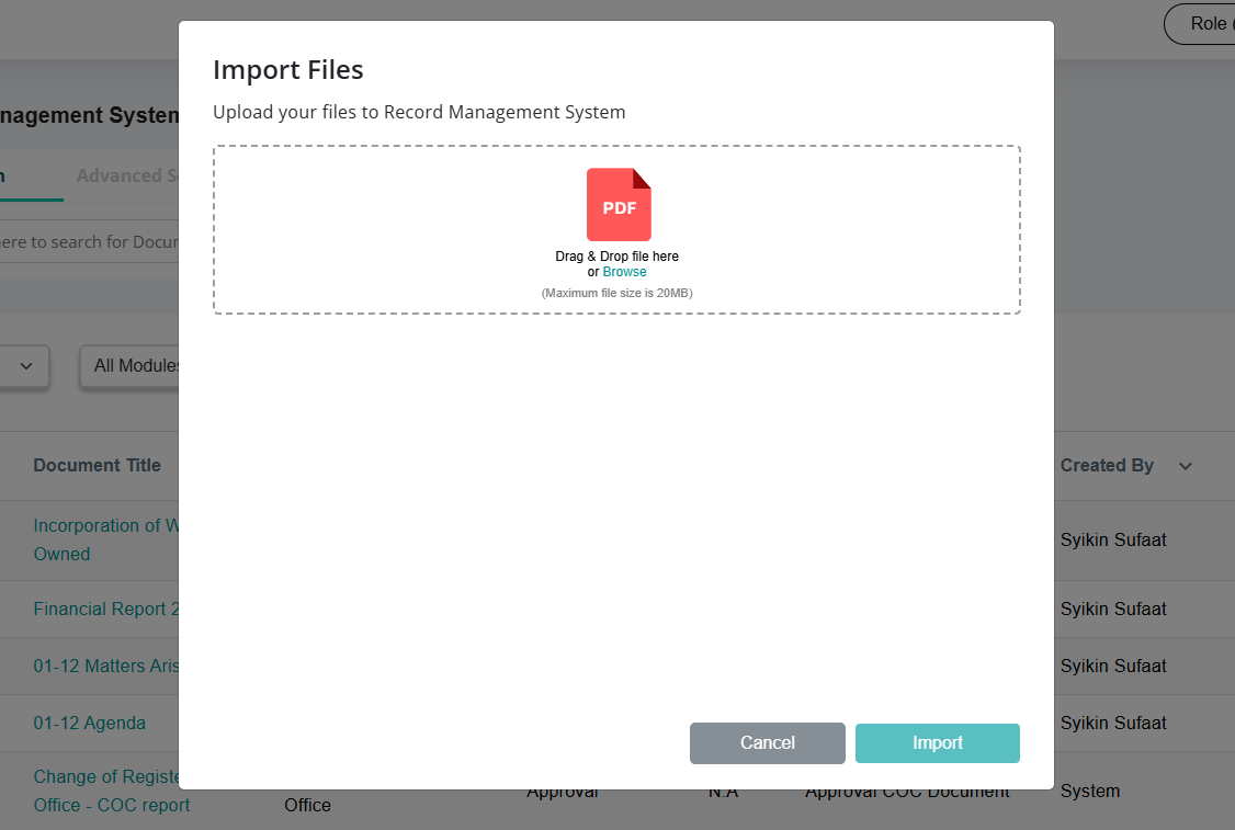 To upload documents into the Record Management System: