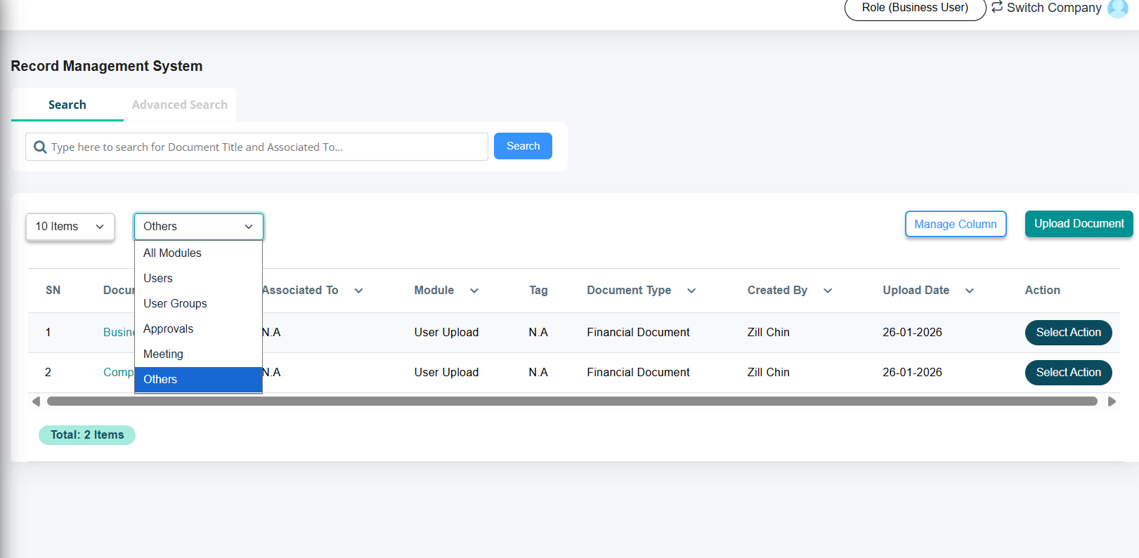 c) Once uploaded, the document(s) will be searchable within RMS and can be filtered by "Others".