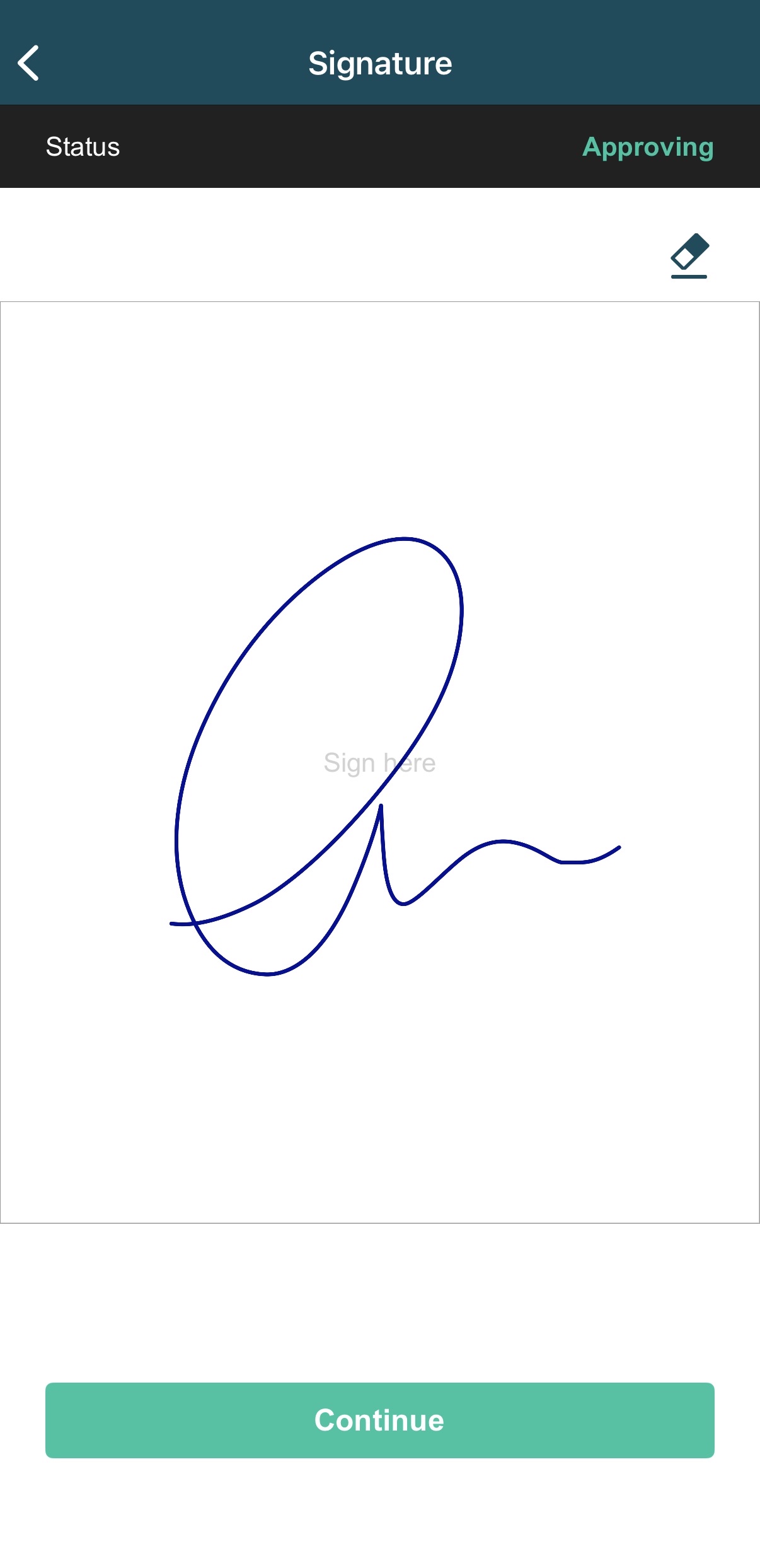 3) Sign on the Signature screen and tap on Continue.