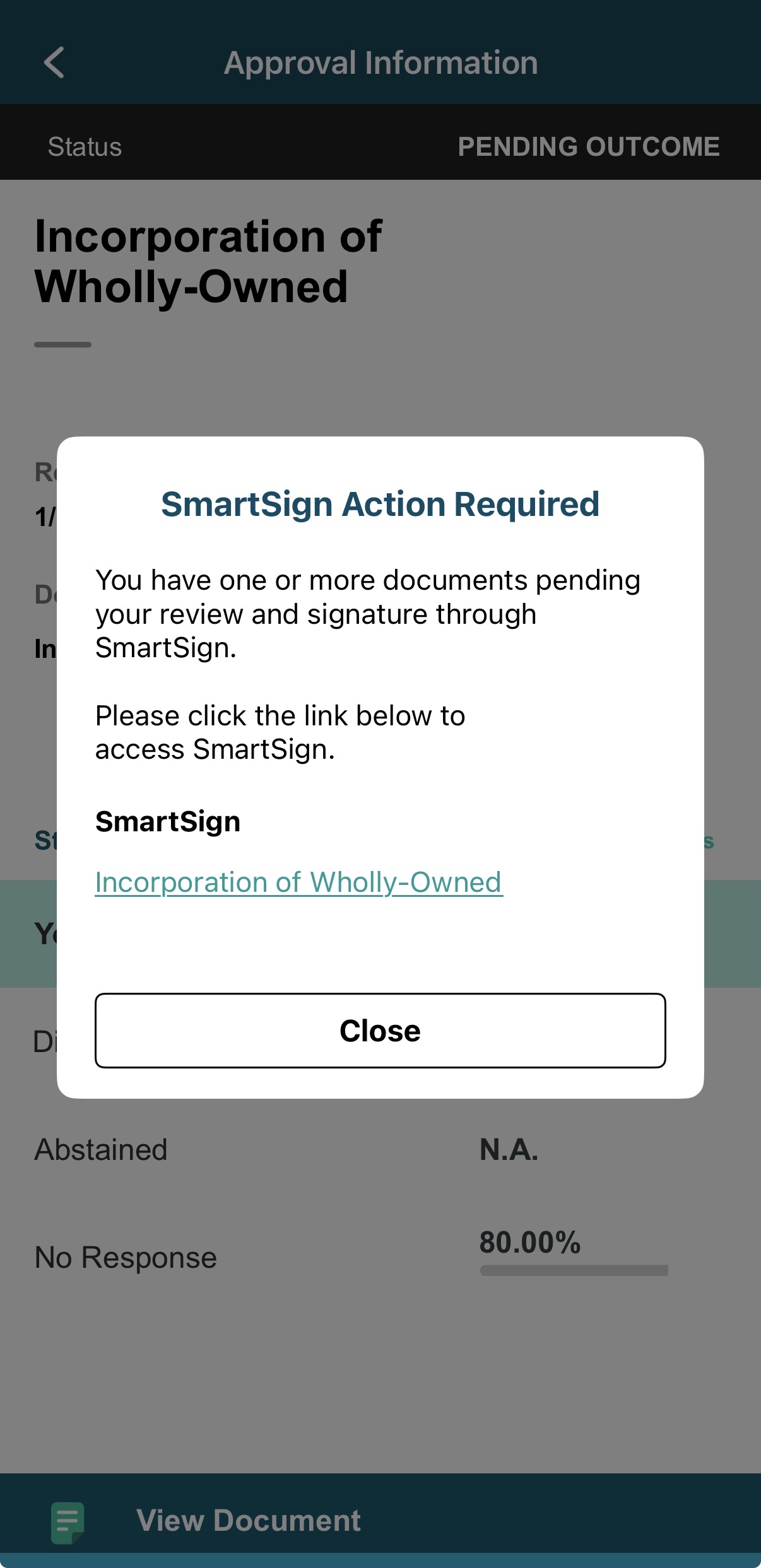 5) If a SmartSign document is linked and requires your signature, a pop-up will appear with a SmartSign link.