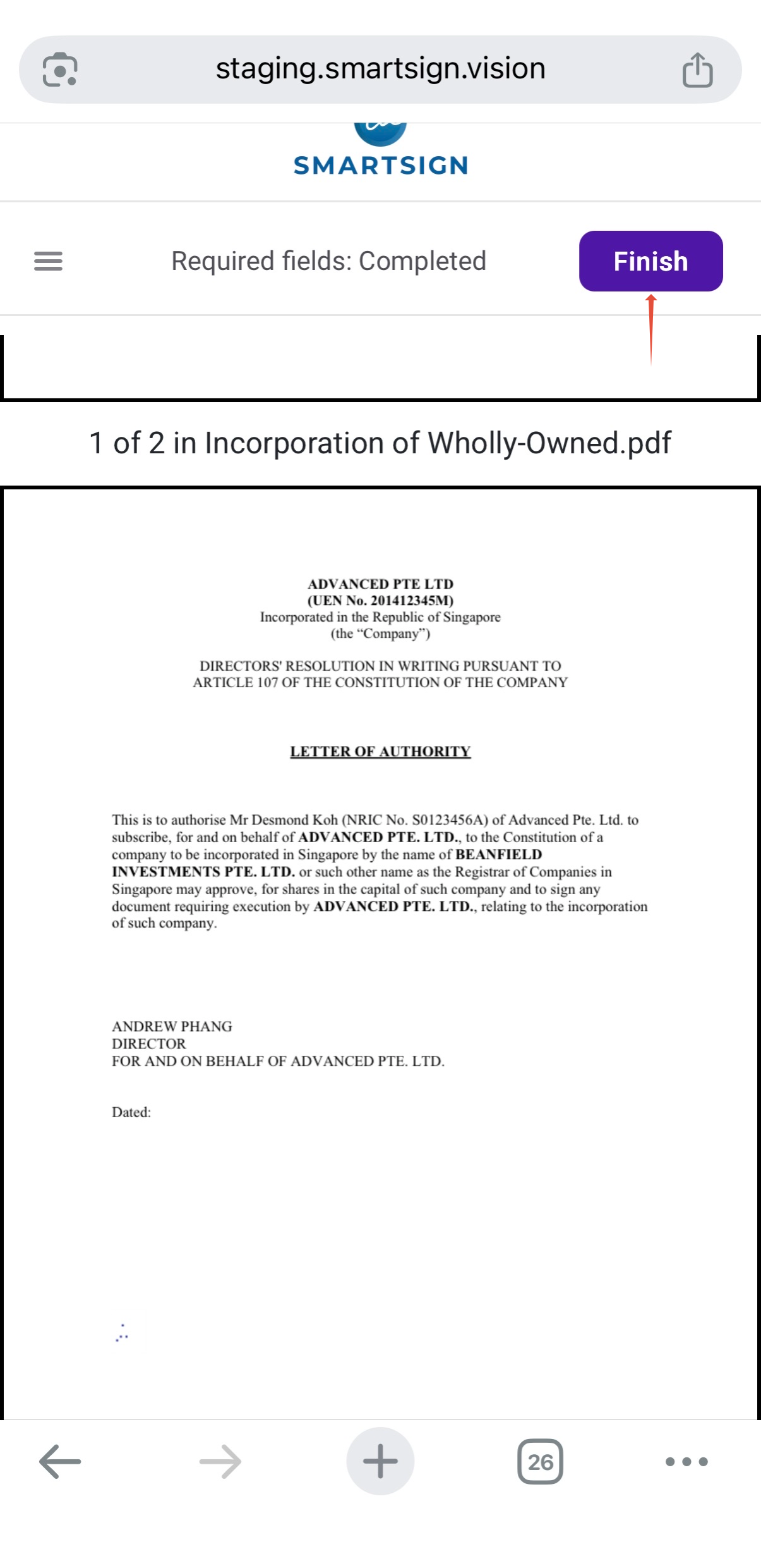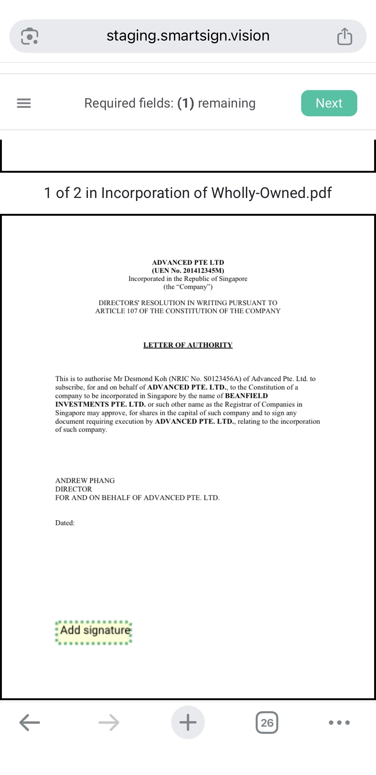 Proceed to sign the document on the signature field provided.