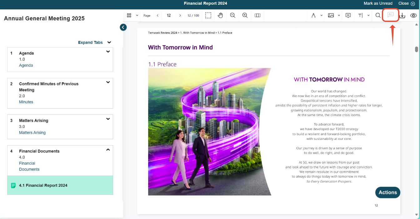 If AI access is disabled for a user, the AI option on the Document page will be greyed out and inaccessible.